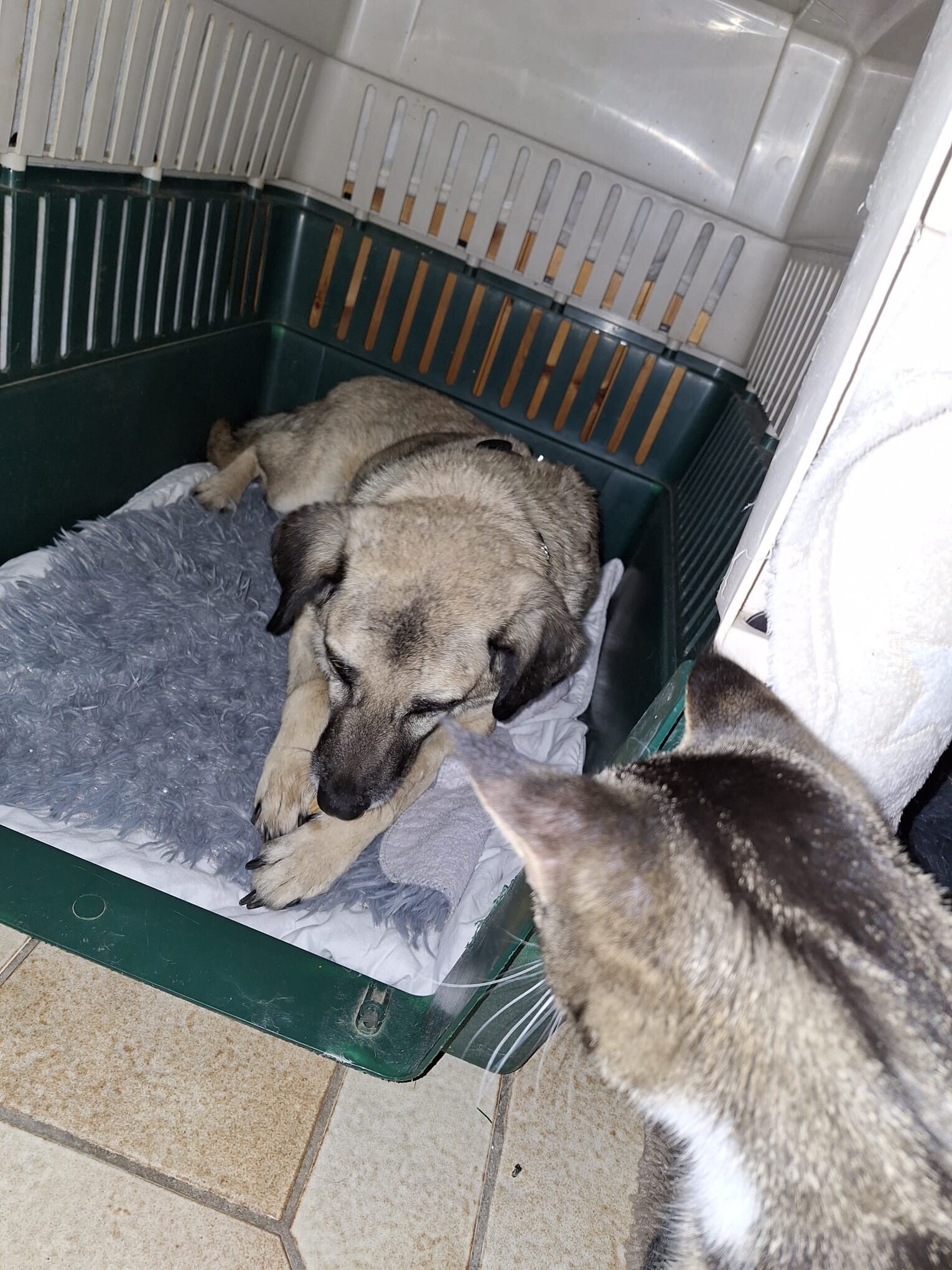 Floppy: Geboren im Februar 2023, kam er im Sommer 2025 als Pflegestelle aus Russland zu uns. Er brachte seine eigene Geschichte mit, entwickelte sich aber so schnell zu einem perfekten Kumpel für Dodo, dass er für immer bleiben durfte.